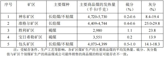 中國神華主要礦區(qū)商品煤特征